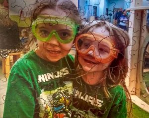 Our wooden jigsaw puzzles are quite popular. Each puzzle is made from one or more customer provided images. These puzzles make excellent personalized gifts; fun developmental toys for children; items memorializing events, people or things; souvenirs; party activity items; and/or team building instruments. Each puzzle is made with attention to our customer specifications and ideas. Customers typically specify: puzzle type, puzzle size, specialty pieces, puzzle piece thickness, number of pieces, edge color, border option/color. We do not use patterns or templates when cutting your puzzle.  Each puzzle piece is uniquely shaped by our puzzle maker. Consequently, no two puzzles are alike. Our puzzles can be nicely accessorized with a frame in which to build one, an easel on which to display the finished framed puzzle, and a decorative box to hold the pieces, or any combination thereof.